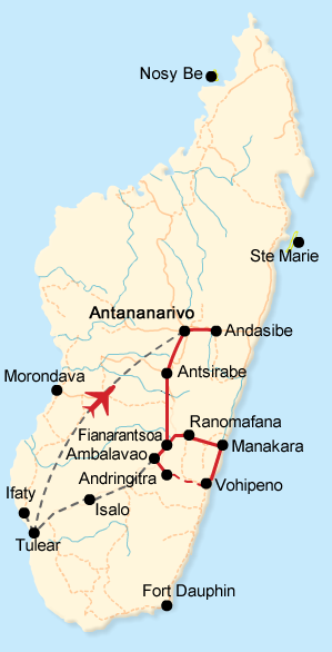 Arrival in Antananarivo. You will be met at the airport. Transfer to the airport and briefing.